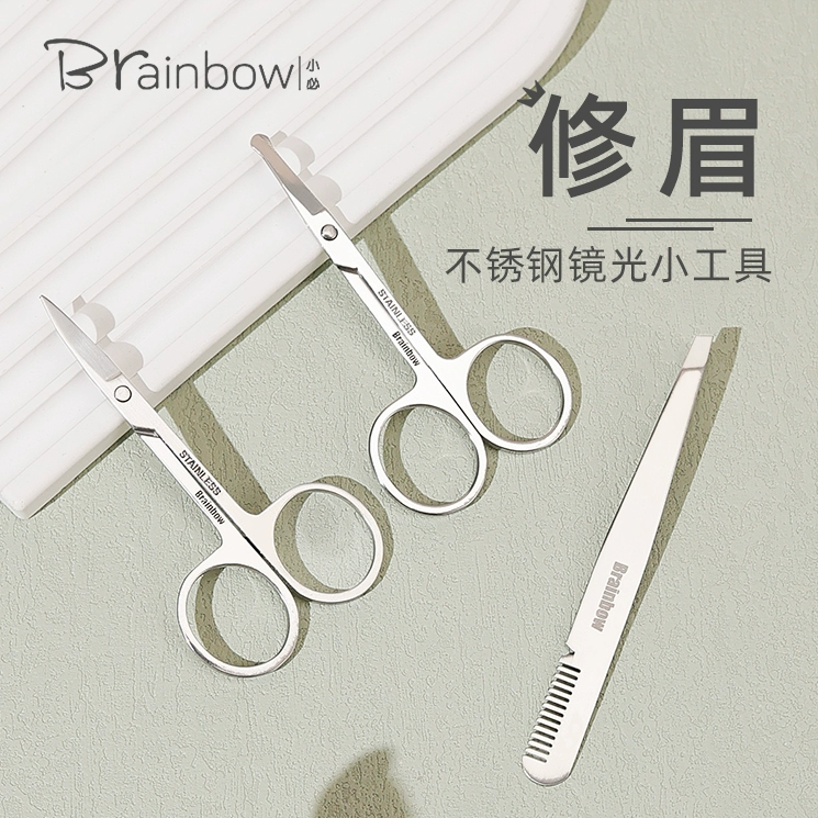 | nameOriginal | Brainbow eyebrow trimming scissors nose hair scissors set pointed round head stainless steel women's eyebrow comb hair plucking tweezers |