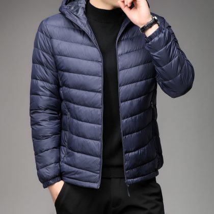 Brand processing autumn and winter lightweight down cotton-padded jacket men's short stand collar hooded middle-aged and elderly lightweight thin broken size coat