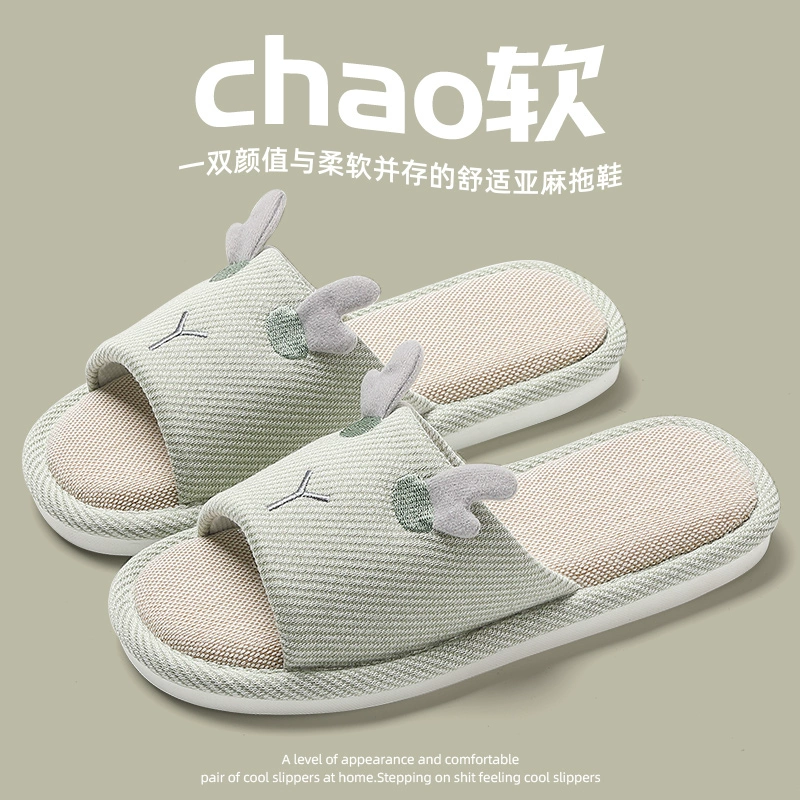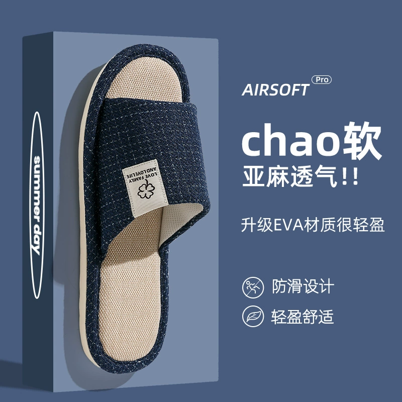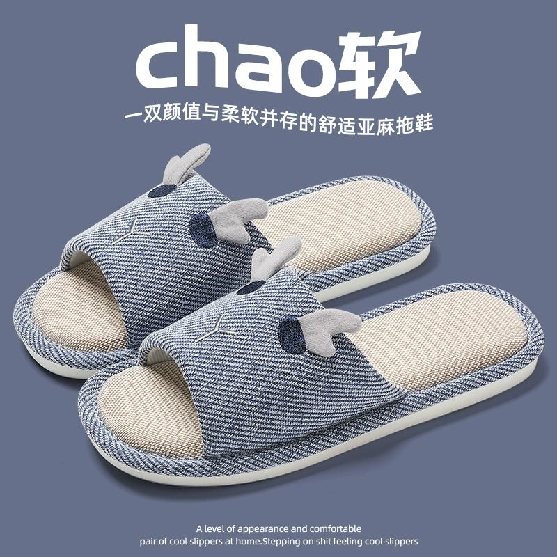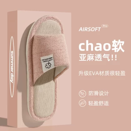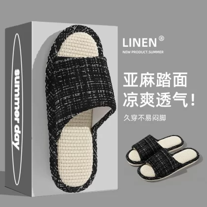 Breathable and sweat-absorbent women's Japanese men's linen slippers