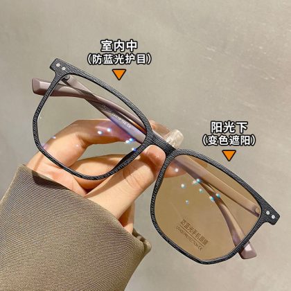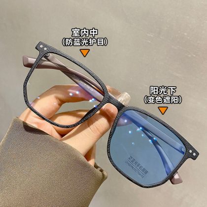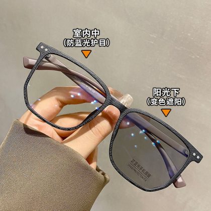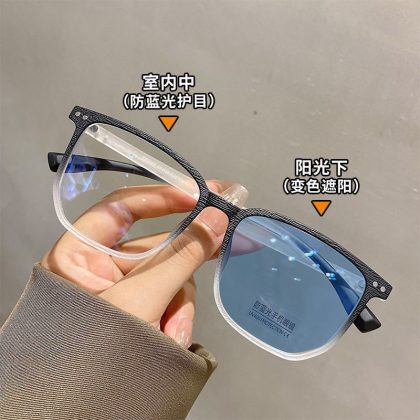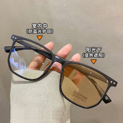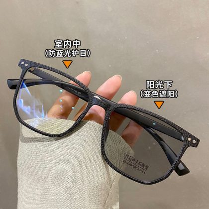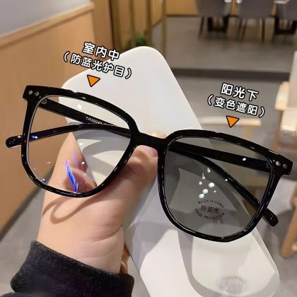 Bright Black Frame Color-Changing Glasses for Women with Myopia Daily Commuting Plain Glasses Ins High-Value Flat Glasses for Men