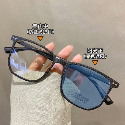 إطار أسود لامع نظارات متغيرة اللون للنساء المصابات بقصر النظر للتنقل اليومي نظارات عادية تأمين نظارات مسطحة عالية القيمة للرجال