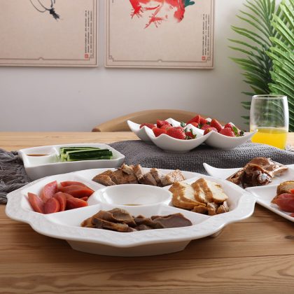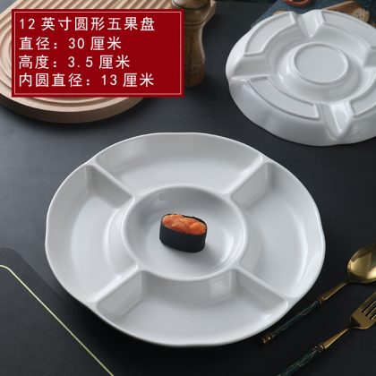 | nameOriginal | Brine platter hotel restaurant plate dried fruit snack snacks grid plate multi-grid five-grid plate ceramic plate |