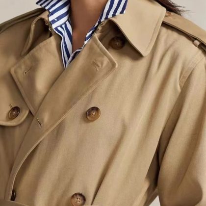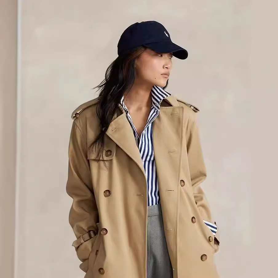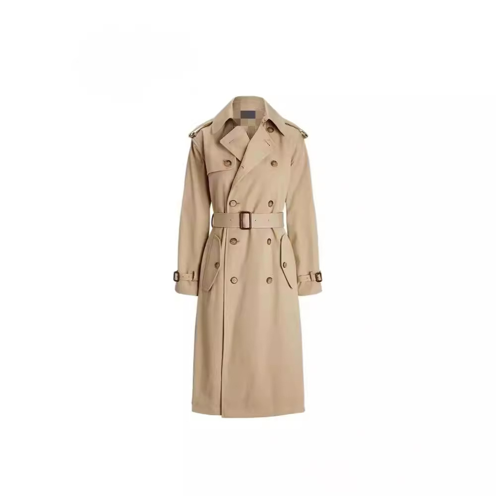 British 2024 New R * L Spring and Autumn Seal God Excellent Double-breasted Classic Twill Women's Long Coat Jacket