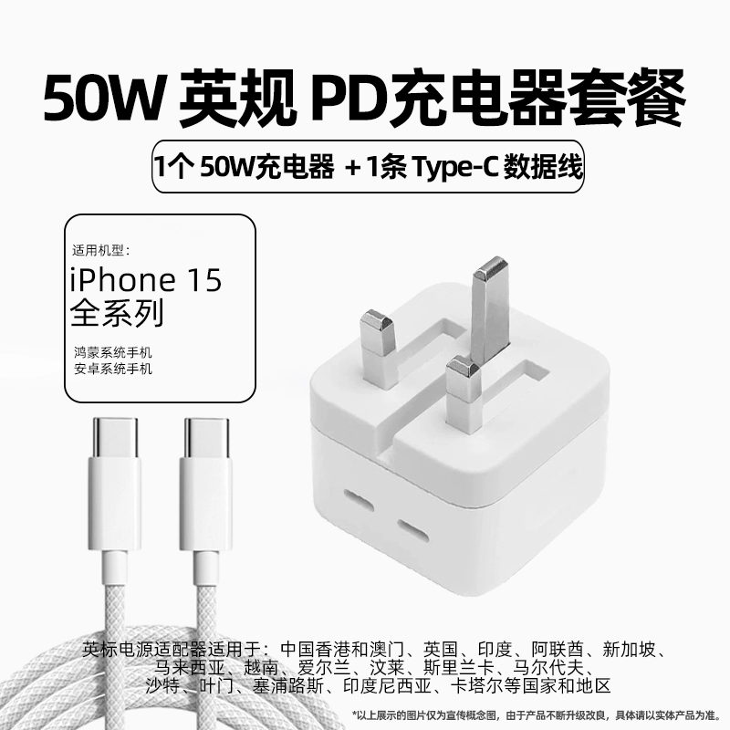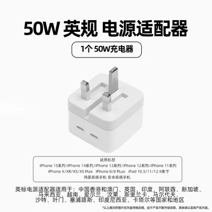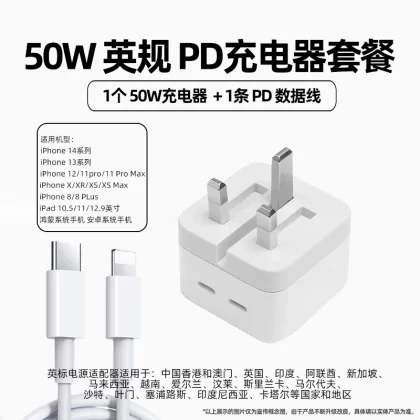 nameOriginal | British standard 50W fast charging head suitable for Apple iphone15 foldable charger 20WPD fast charging Hong Kong British standard brand compatible charger 14typec flash charging 13promax data cable |