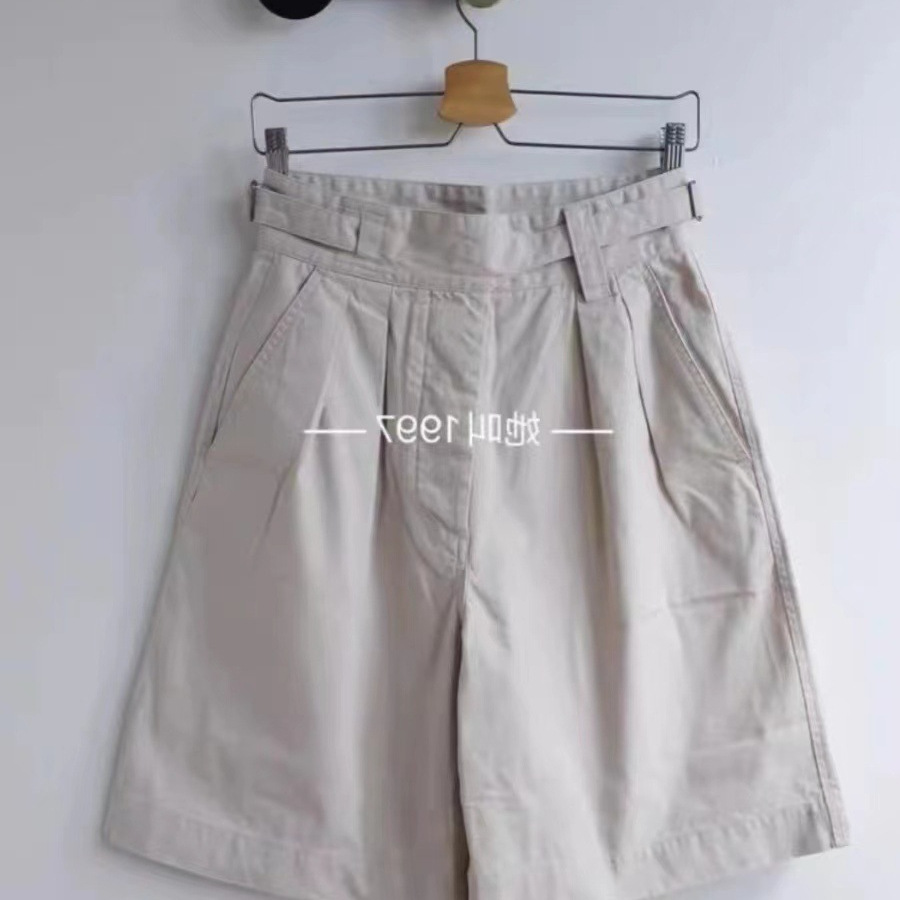 | nameOriginal | British-tone double-pleated cotton high-waist shorts with waist loop embellished five-point pants for women |