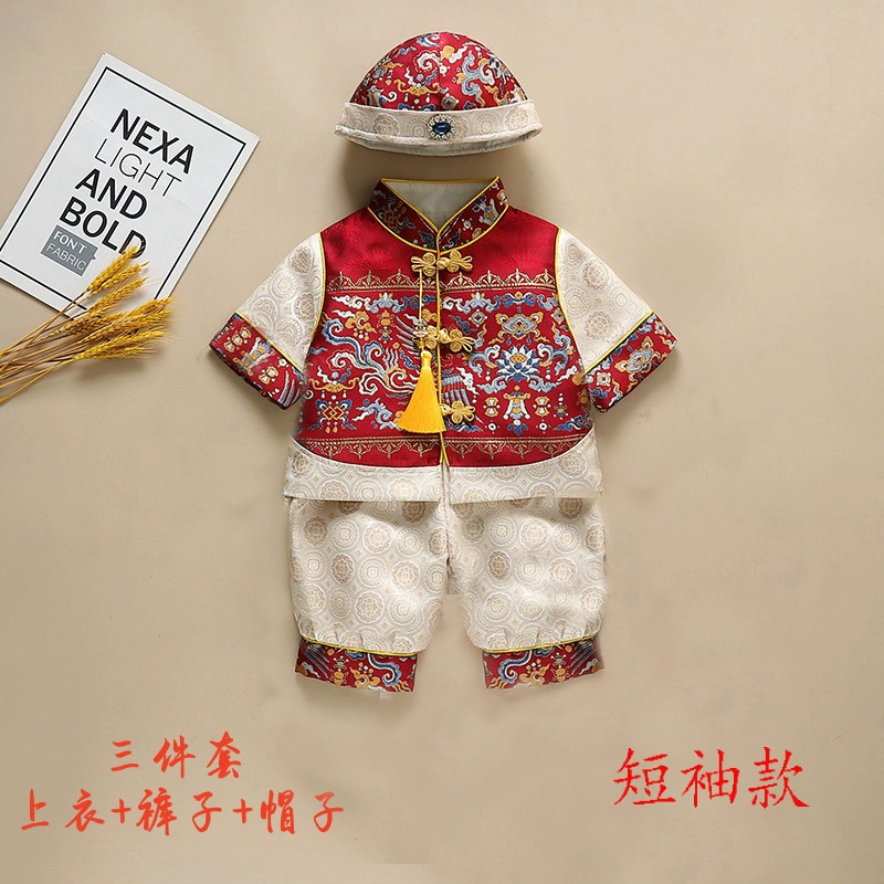 | nameOriginal | Brocade Young Master Yellow Mandarin Short Sleeve Baby Tang Suit |