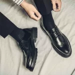 شباب بروغ أسود عريس العريس أحذية جلدية