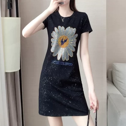 | nameOriginal | Bronzing T-shirt dress with slimming and bright silk daisy |