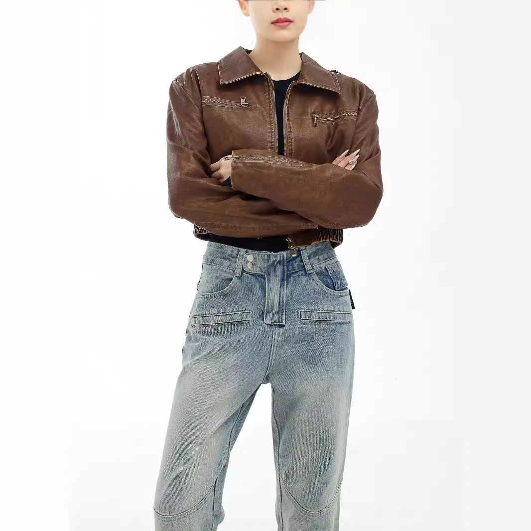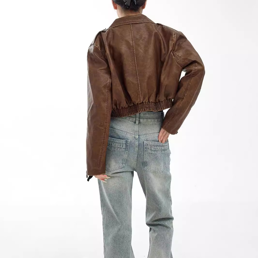 | nameOriginal | brown American Retro Leather Jacket Women's Spring New Fashion Jacket Warm Bearer Jacket W2822 |