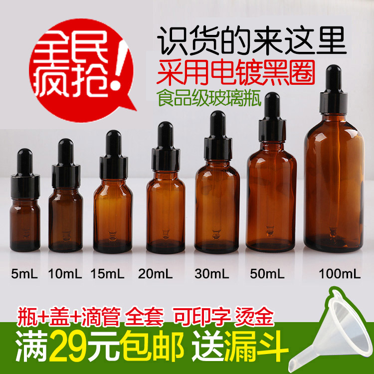 | nameOriginal | Brown brown glass essential oil bottle empty bottle repackaged empty bottle black plastic head black circle dropper bottle 10ml essential oil bottle |
