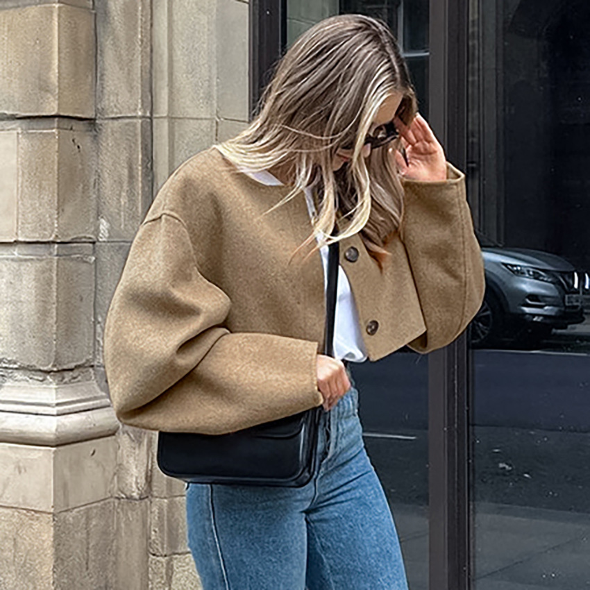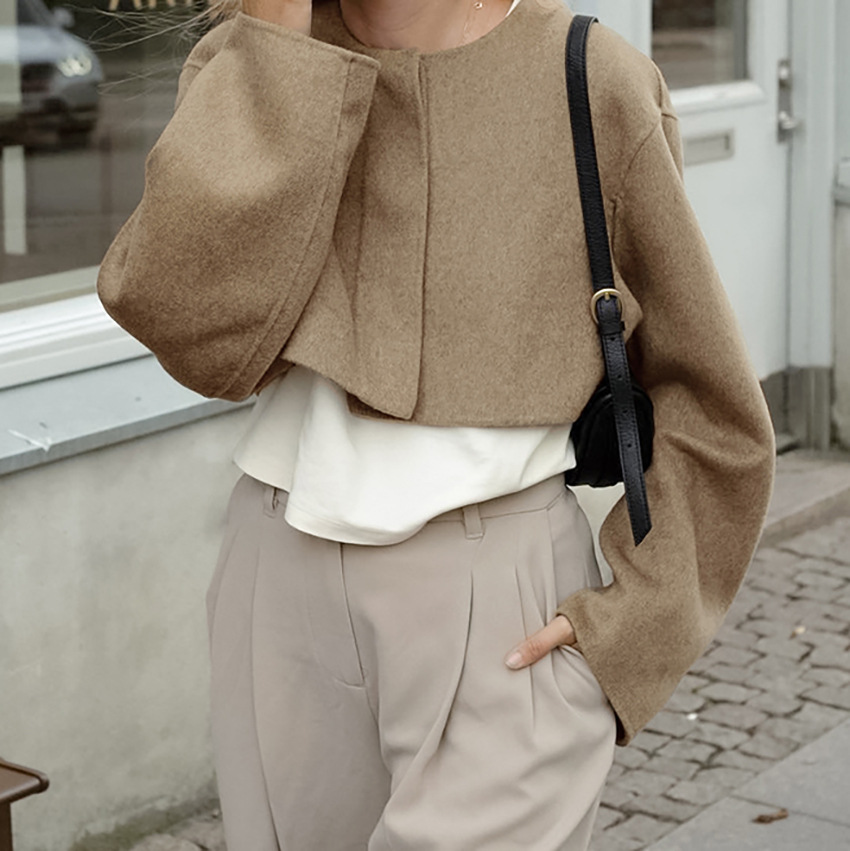 | nameOriginal | Brown lazy sense niche design Maillard style woolen coat 2023 European and American autumn and winter foreign trade women's short top |