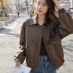 | nameOriginal | Brown Leather Jacket Short 2023 New Spring and Autumn Biker Suit American Retro PU Leather Jacket for Petite Women |