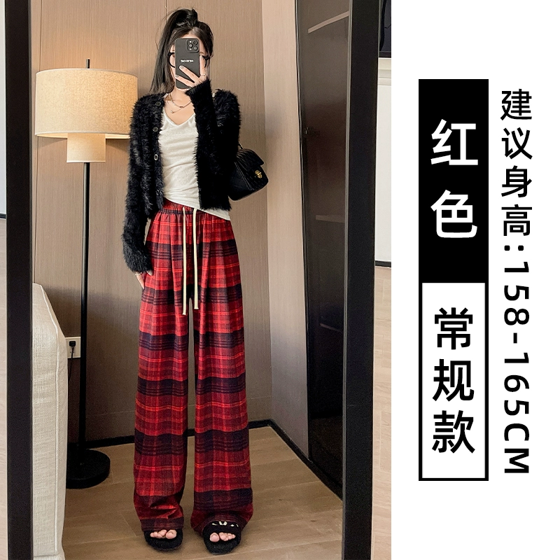 | nameOriginal | Brown plaid pants for women autumn and winter 2024 new high-waisted loose casual slim and drapey retro straight wide-leg pants |
