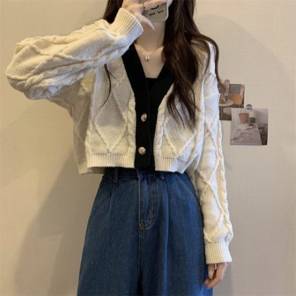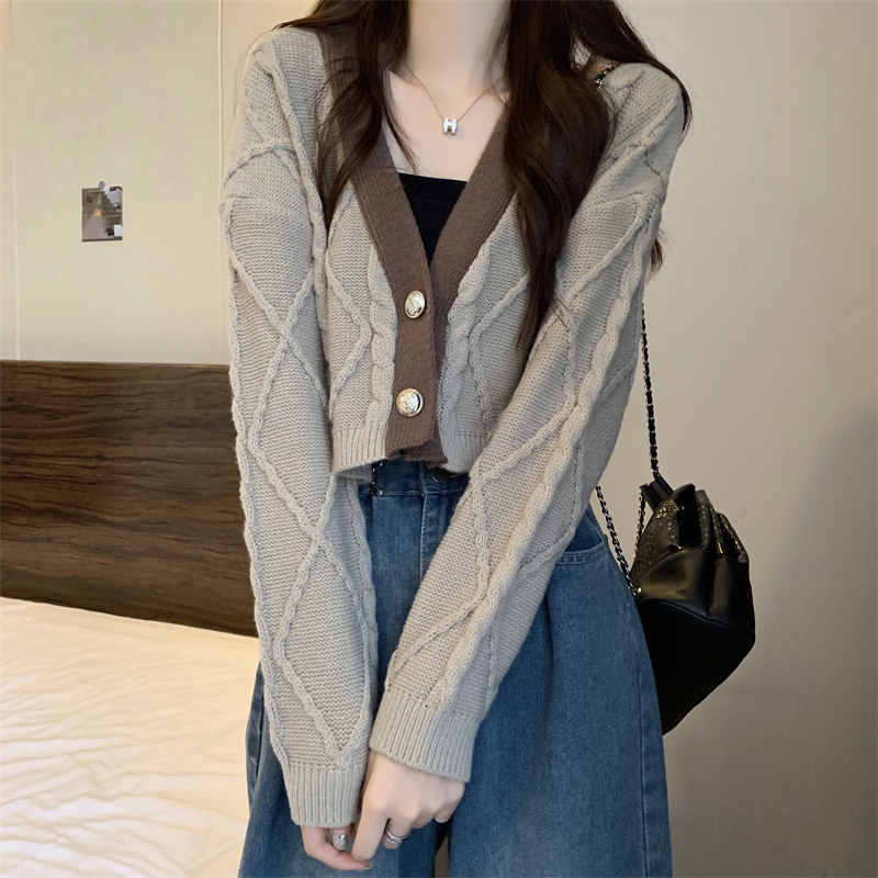 | nameOriginal | Brown V-neck knitted cardigan women's autumn and winter short high waist long sleeve big Lang sweater coat Maillard shoulder top |