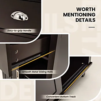 Open shelf and 2 drawers keep kitchen supplies organized and classified