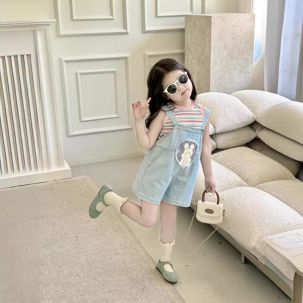 | nameOriginal | Bunny suspenders Pink Sweetheart Striped Vest 2024 Summer New Korean Children's Suit |