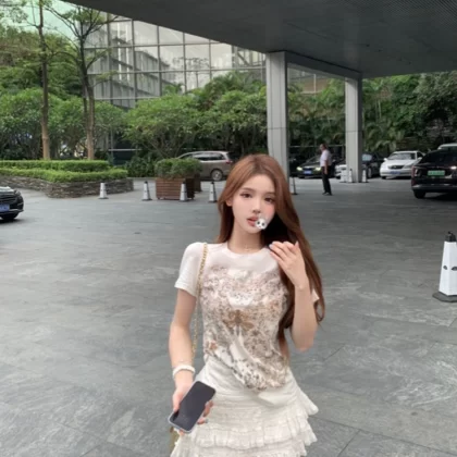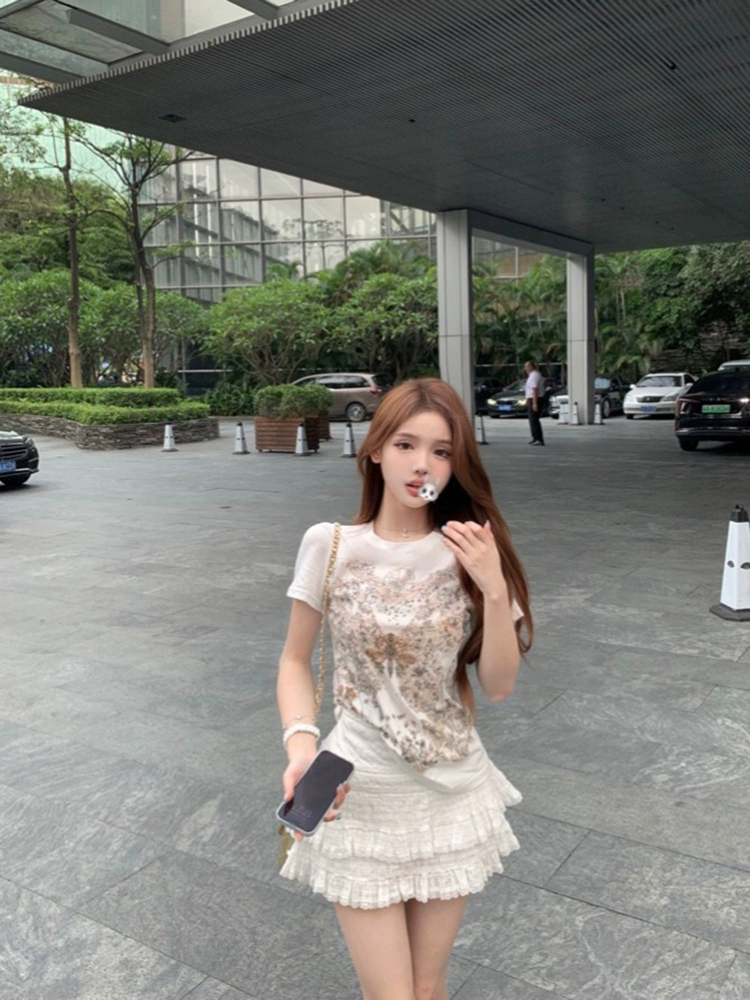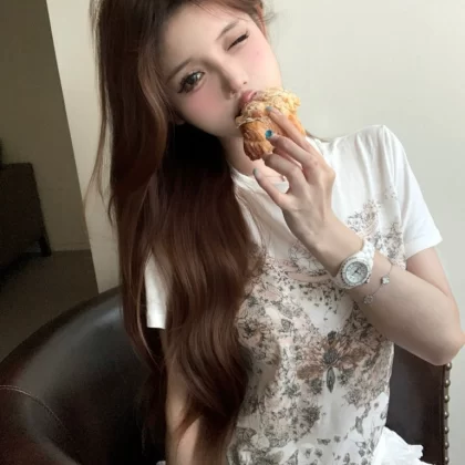 | nameOriginal | Butterfly print white right shoulder slim round neck short sleeves |