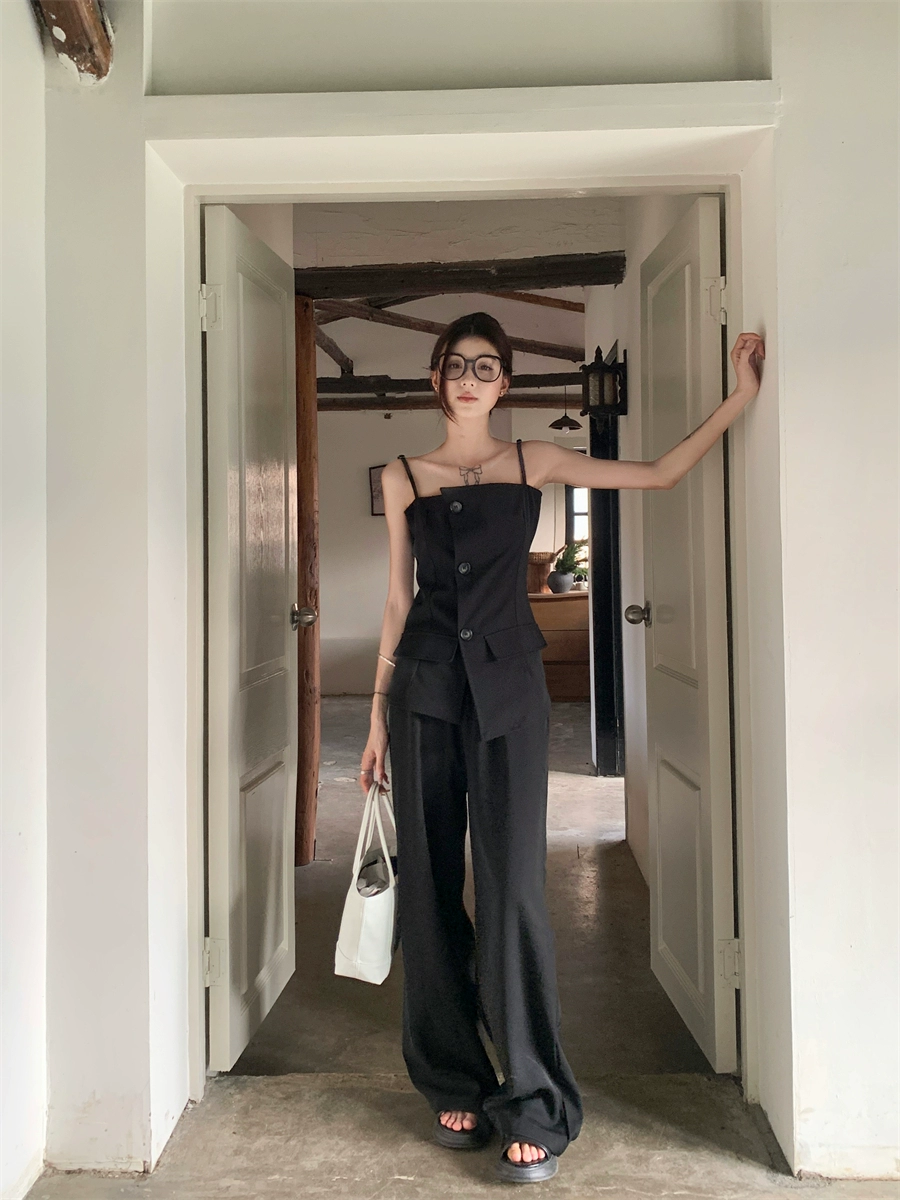 Button camisole wide leg trousers fashion suit