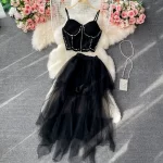 Cake mid-length a-line rhinestone tube top mesh skirt