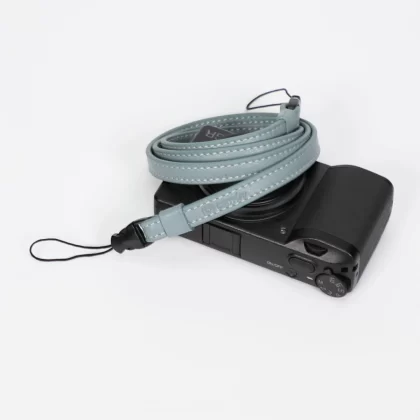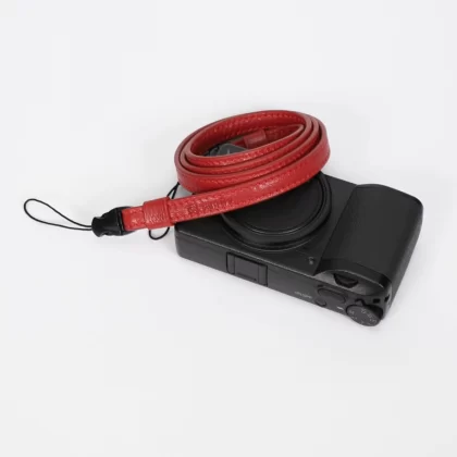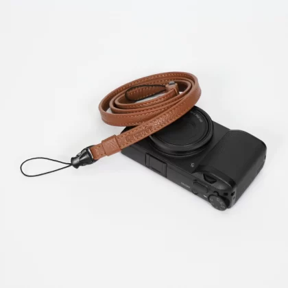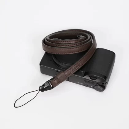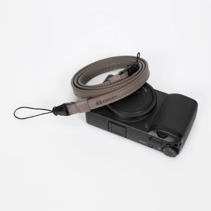 | nameOriginal | cam-in pebbled leather camera string strap Ricoh GR2 GR3 x quick release shoulder strap diagonally across black card G7X |