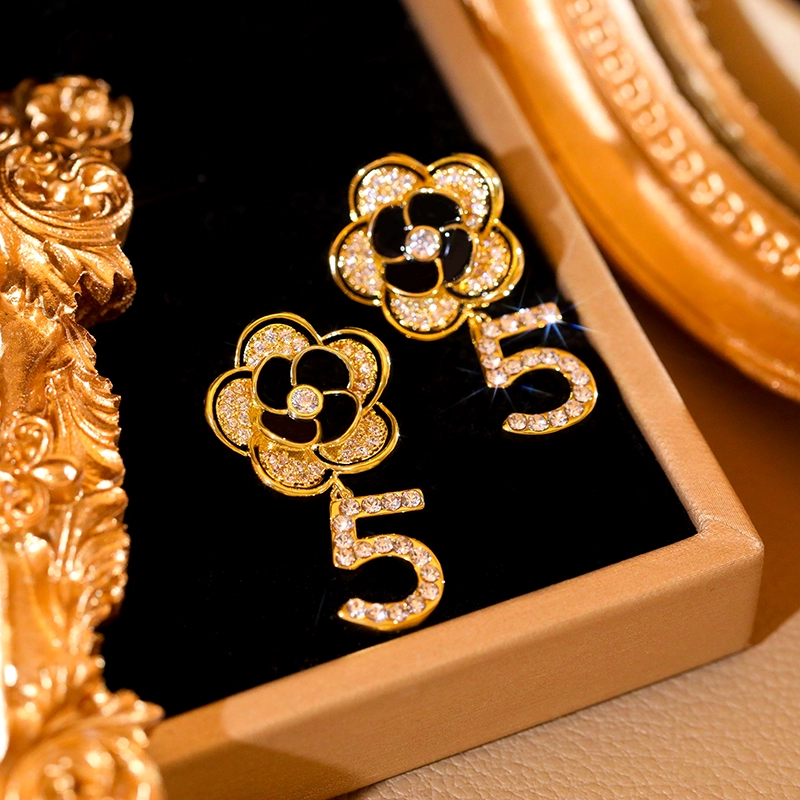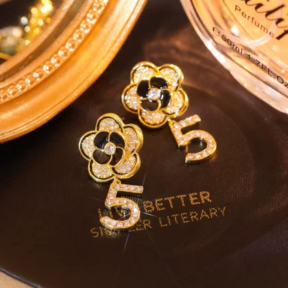 | nameOriginal | Camellia ear clip without piercing women's small fragrant earrings zircon digital earrings 2024 new summer luxury earrings |