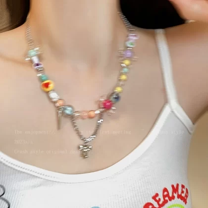 | nameOriginal | Candy seaside colorful beaded necklace female cute star dopamine accessories sweet cool hottie y2k clavicle chain trendy |