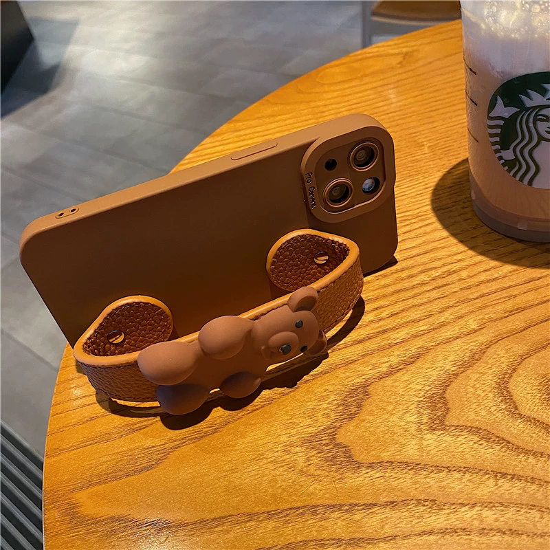 | nameOriginal | Caramel color cute bear wristband apple 15promax mobile phone case iphone14 soft 11 anti-fall bracket 16 protective cover 12 cartoon 13mini silicone XR soft shell xsmax female 7/8plus |