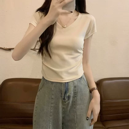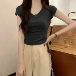 | nameOriginal | Careful gray waist slimming American pleated short sleeves |