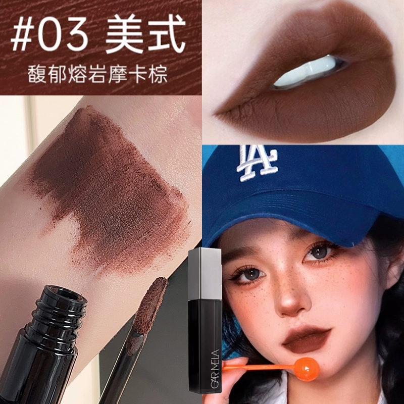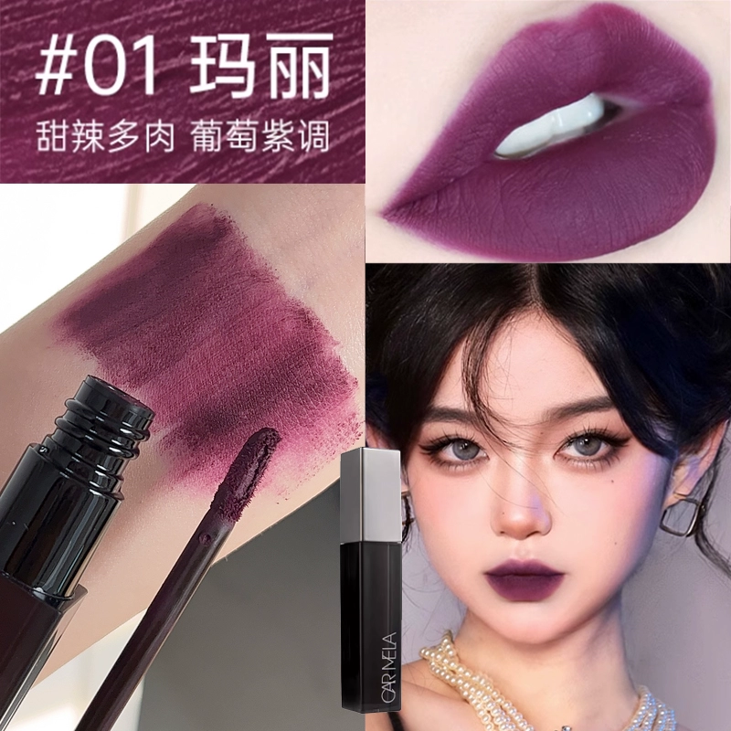 Carmela's new black and purple matte niche lipstick