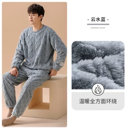 | nameOriginal | Carrefen Men's Pajamas Autumn and Winter Winter Flannel Plus Velvet Thickened Warm Coral Fleece Home Clothing Set |