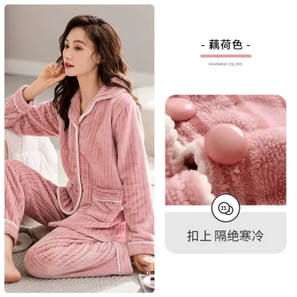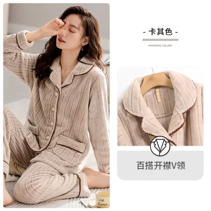 | nameOriginal | Carrefen women's pajamas winter women's autumn and winter flannel plus velvet thickened coral velvet home clothes winter |