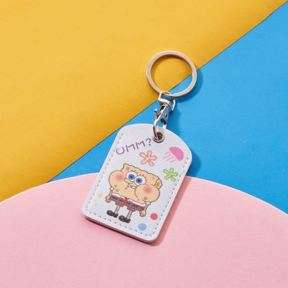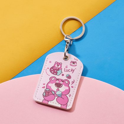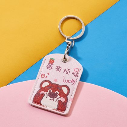 Cartoon access control card cover rectangular keychain community access control card protective cover elevator leather card cover printed LOGO