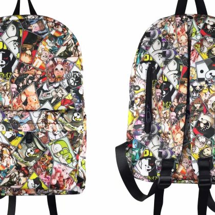 Cartoon bullet theory broken peripheral youth fashion backpack black white bear male and female student schoolbag backpack travel bag