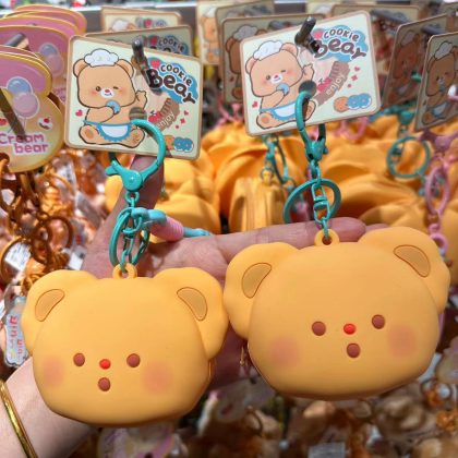 Cartoon Cute Cream Bear Silicone Coin Purse Internet Popular Fashionable Headphone Bag Storage Small Bag Girl's Schoolbag Hanging Accessories