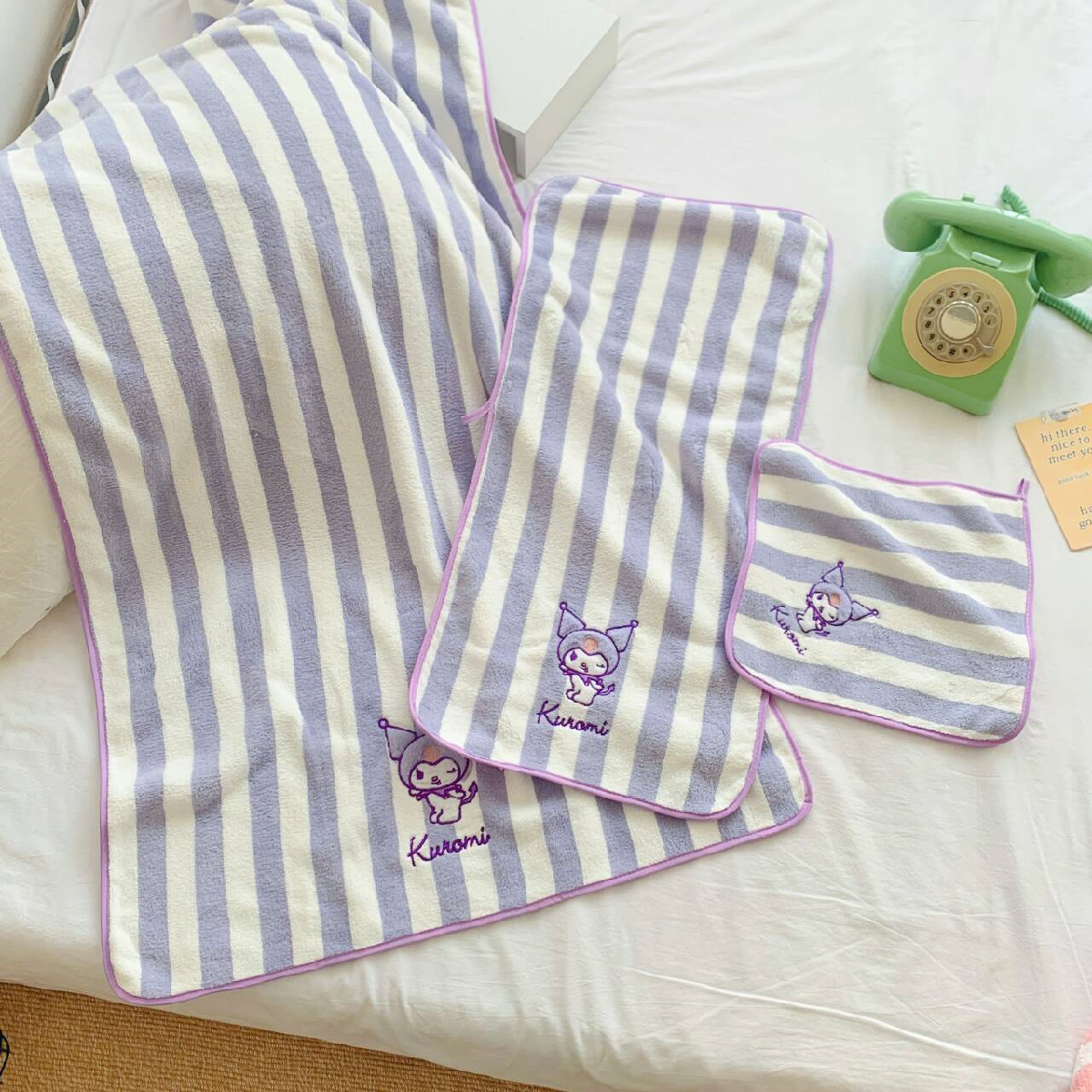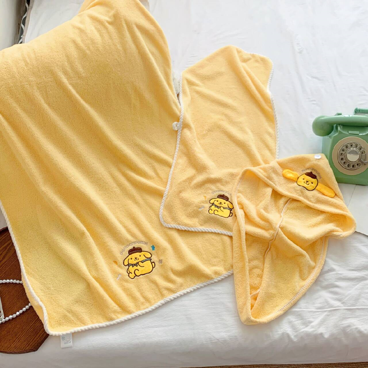 | nameOriginal | Cartoon cute embroidered high-quality coral velvet soft thickened absorbent towel bath towel dry hair cap three-piece set large size |