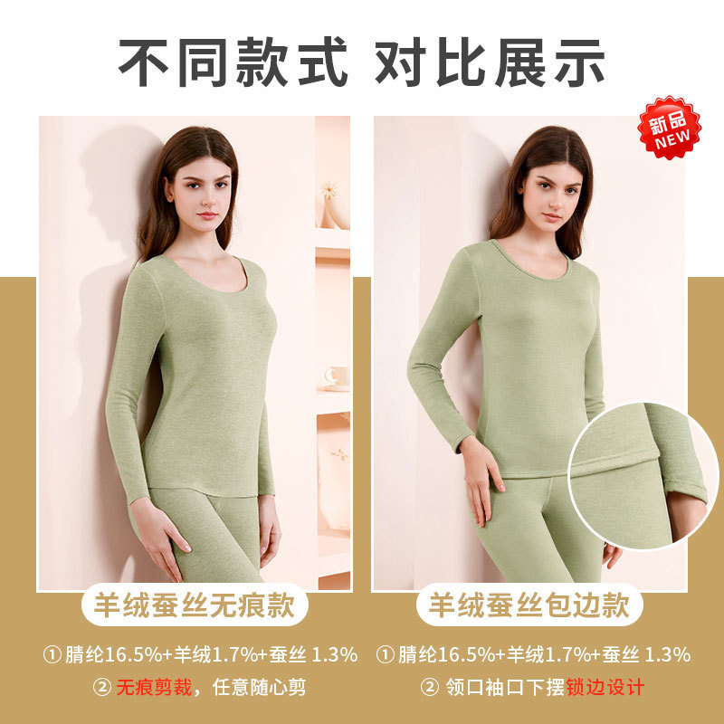 Cashmere silk thermal underwear women's suit winter bottoming velvet seamless heating autumn clothes long pants men's warm clothes