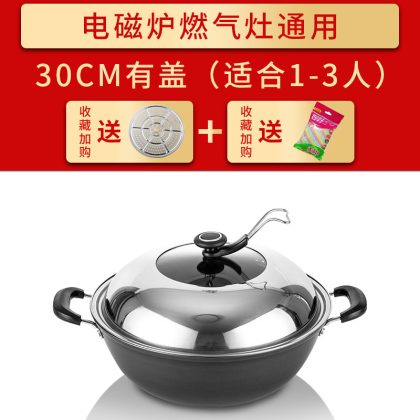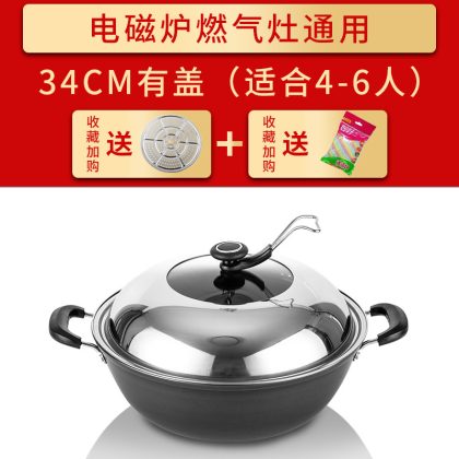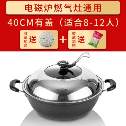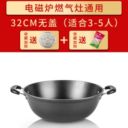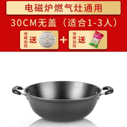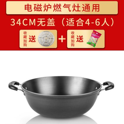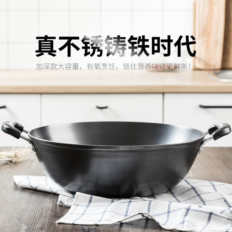 nameOriginal | Cast iron pot double-ear pot deepening large wok pure raw iron pot induction cooker wok non-coated non-stick large capacity |