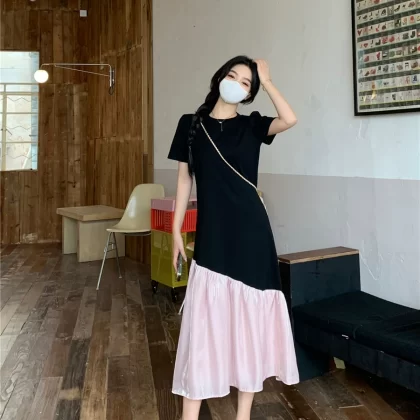 | nameOriginal | Casual contrasting color irregular belly-covering dress for fat girls |