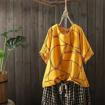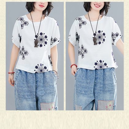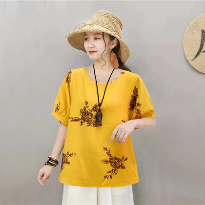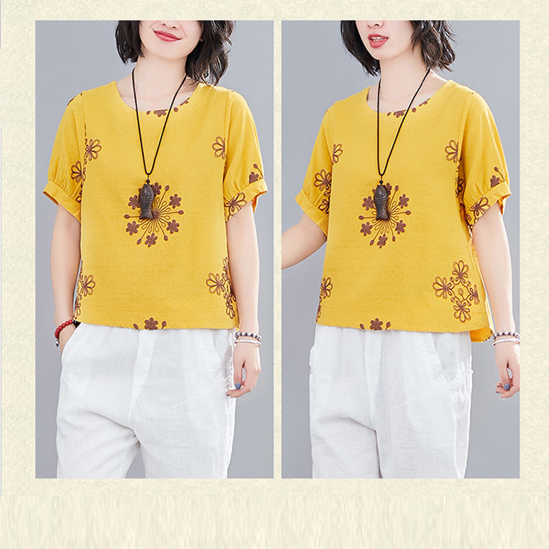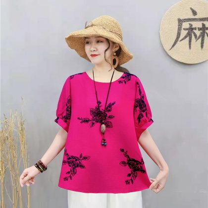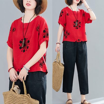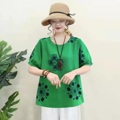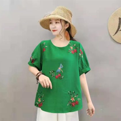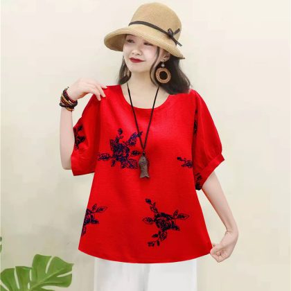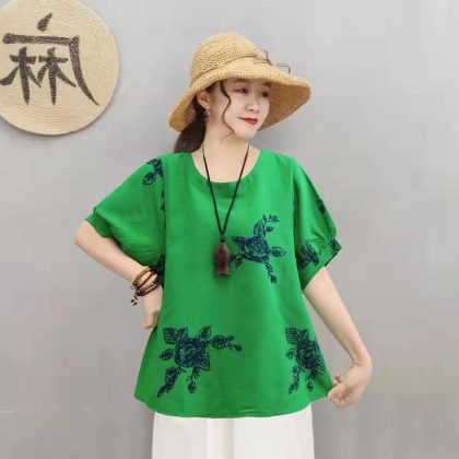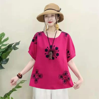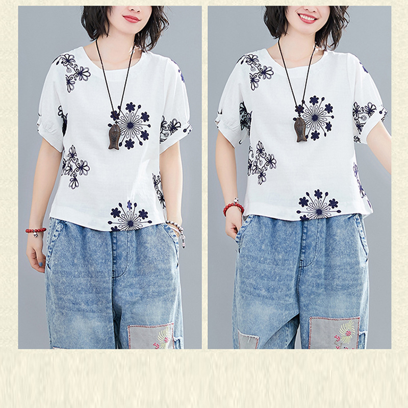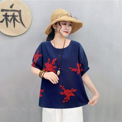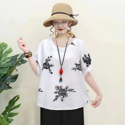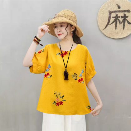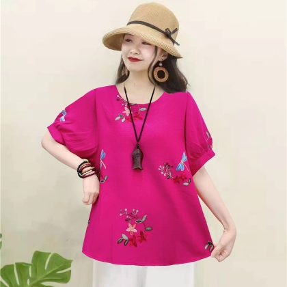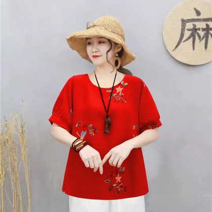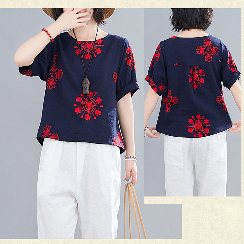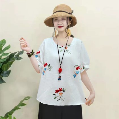 | nameOriginal | Casual Cotton Linen Pullover Slimming Ethnic Style Embroidered Flower Lantern Sleeve All-Match Travel Top Women's Blouse |