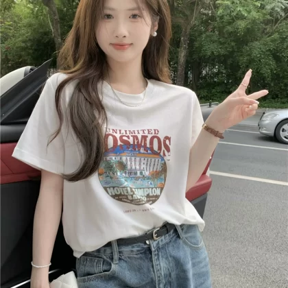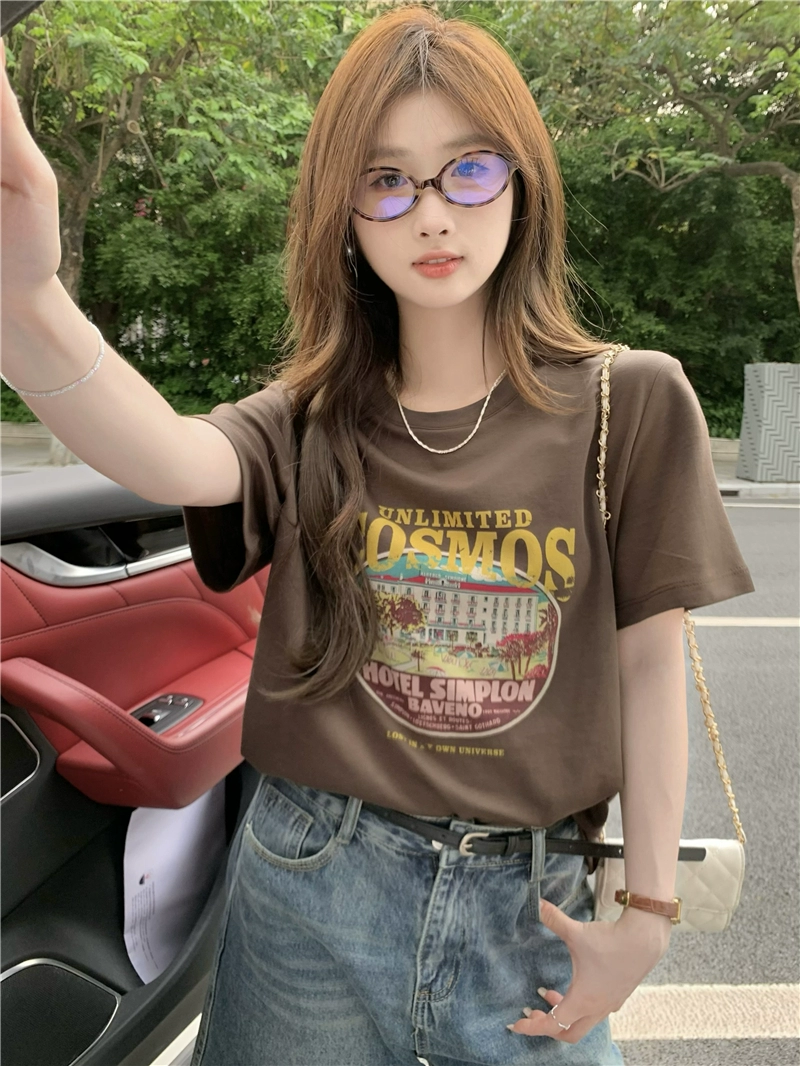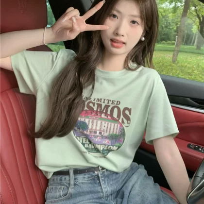 | nameOriginal | Casual printed short-sleeved T-shirt with age-reducing letter design |