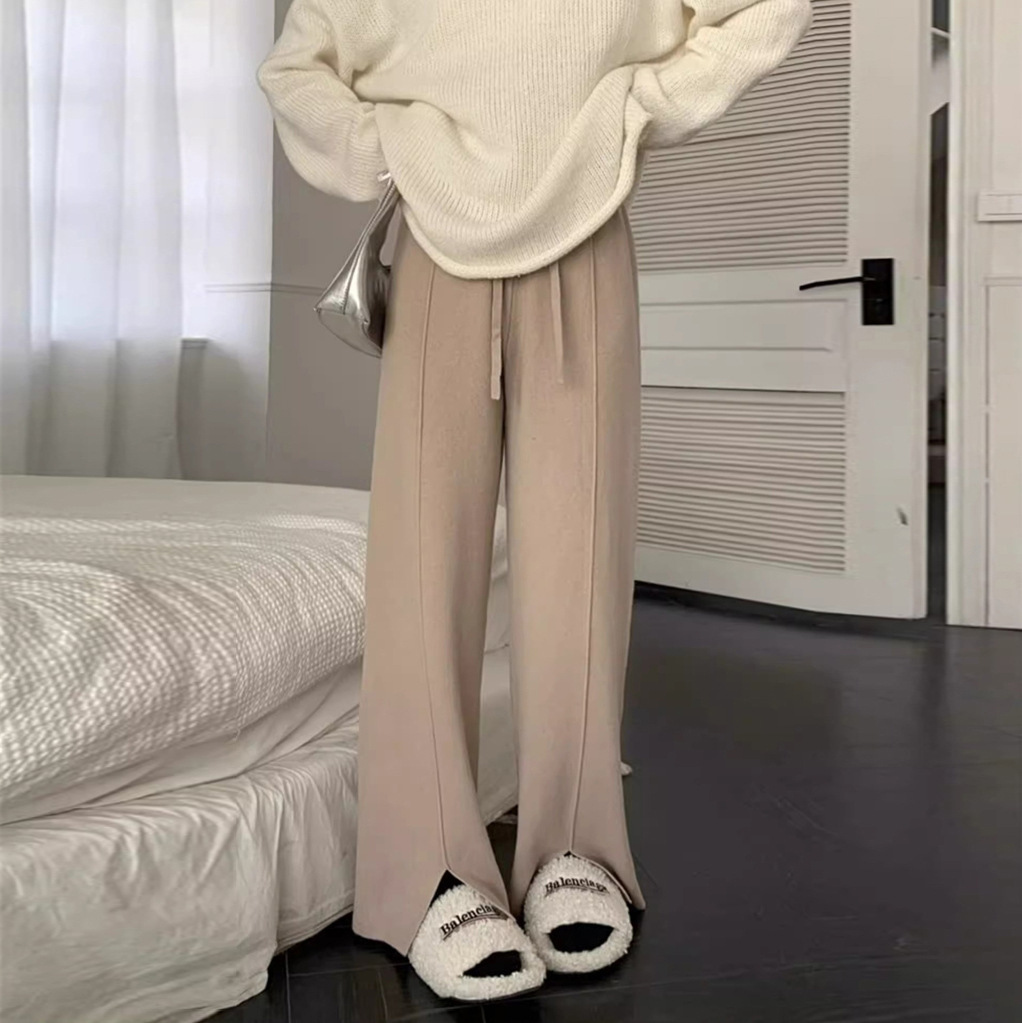 | nameOriginal | Casual Split Dopping Wide Leg Pants Women's Autumn and Winter New High Waist Small Men's Dopping Knitted Casual Pants for Outer Wear |