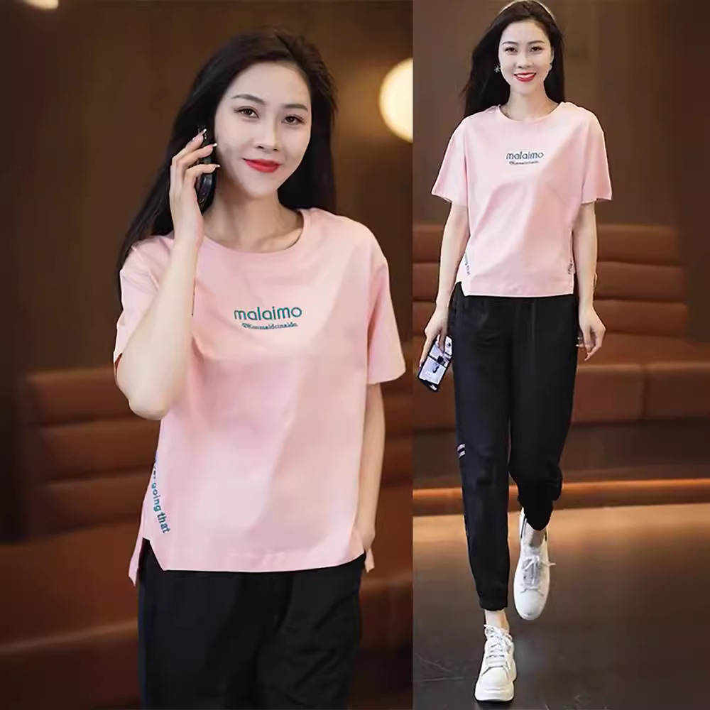 Casual Sports suit Women's 2024 Summer New This Year's Popular Western Fashion Short-sleeved Sweat Pants Two-piece Set