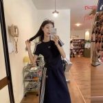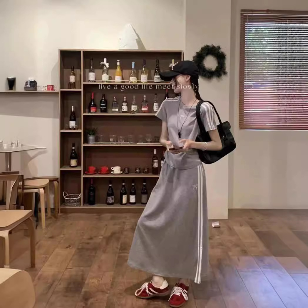 Casual Sports suit Women's Three-bar Bow Short-sleeved T-shirt Summer Hip Skirt Sweet Spice Girl Two-piece Set 6