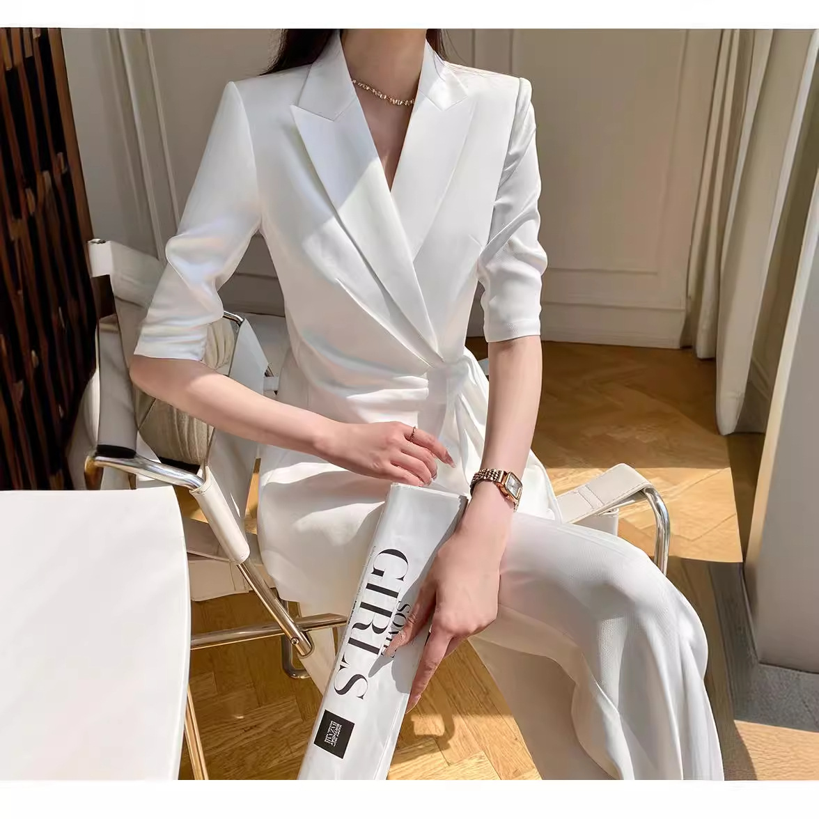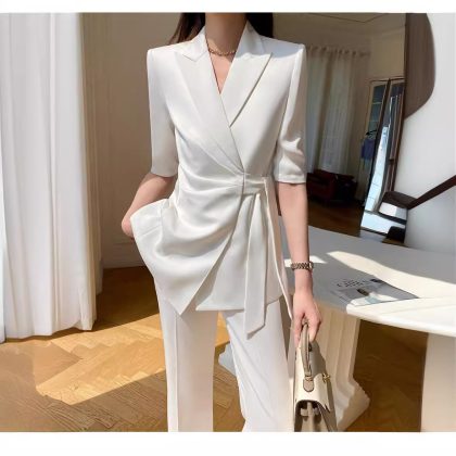 | nameOriginal | Casual suit suit women's summer thin fashionable elegant professional socialite Chanel style white lace-up suit 1468 |