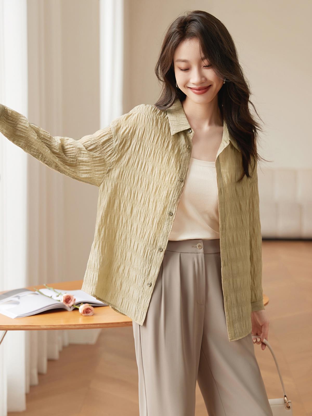| nameOriginal | Casual Texture Back Split Lace-up Air Conditioner Jacket 2024 Summer New Lightweight Comfortable Slimming Blouse |