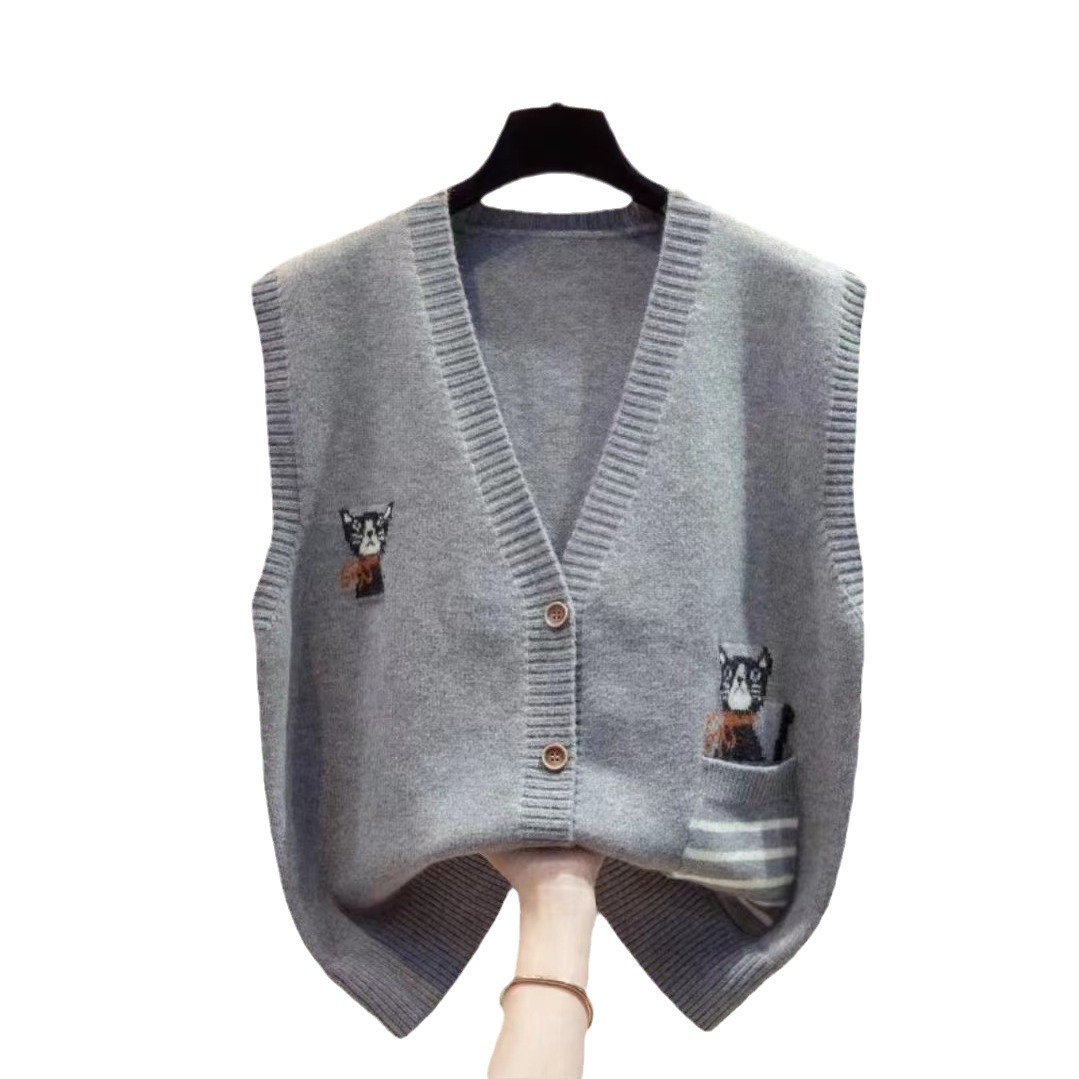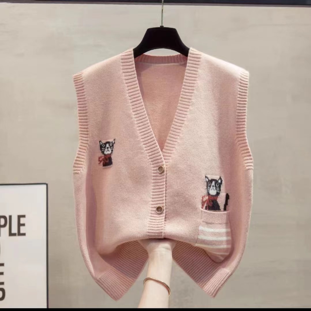 | nameOriginal | Casual Vest Women's 2024 New Fresh Embroidered Cat Gook Loose V-neck All-match Cardigan Top Women's Autumn and Winter |