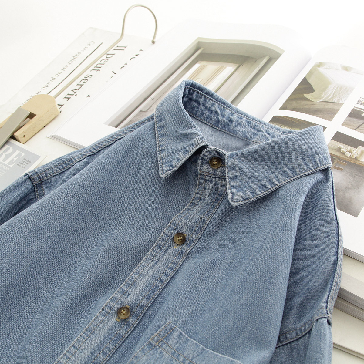 | nameOriginal | Casual Washed Denim Mid-length Coat Thin 2024 Spring and Autumn Hong Kong Style Shirt Jacket Fresh Elegant Commuting Slimming |