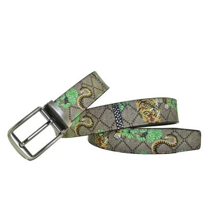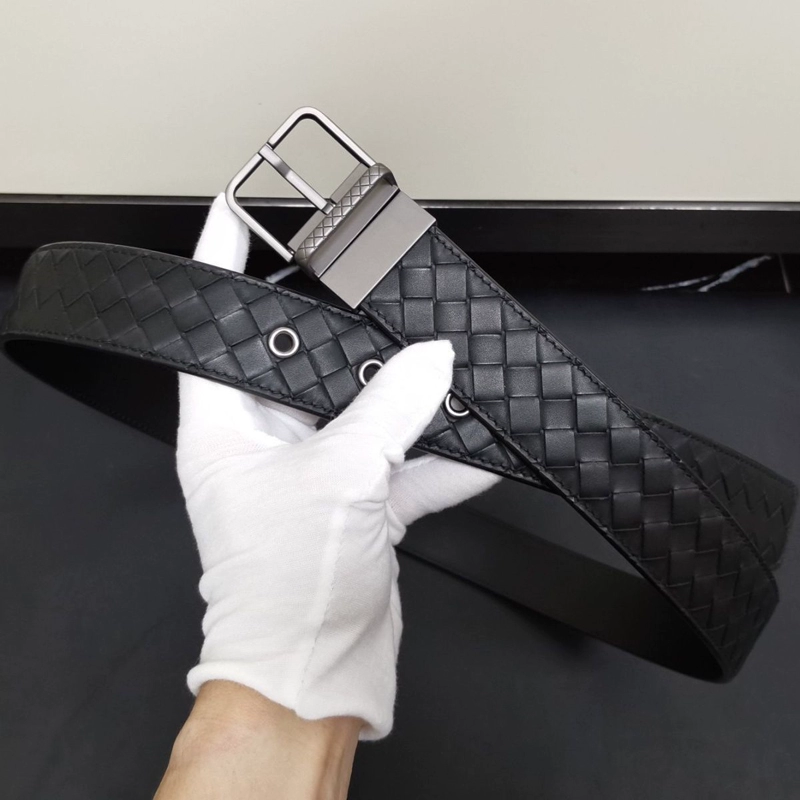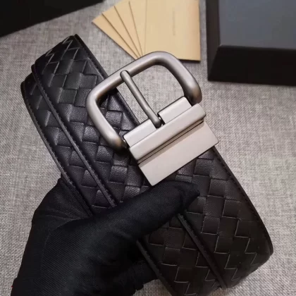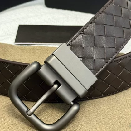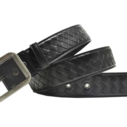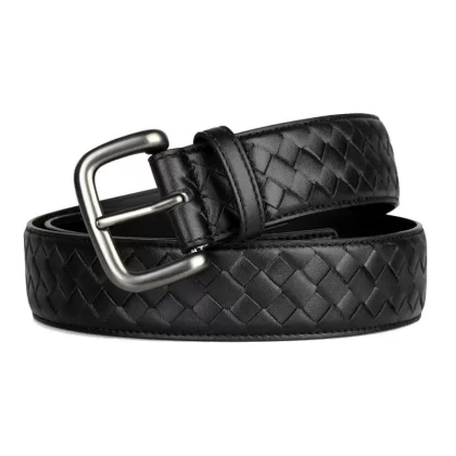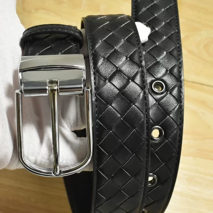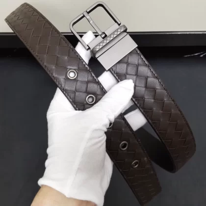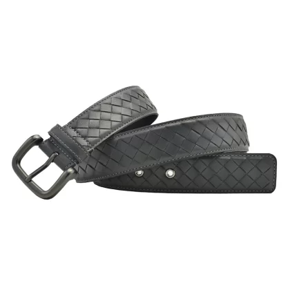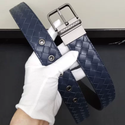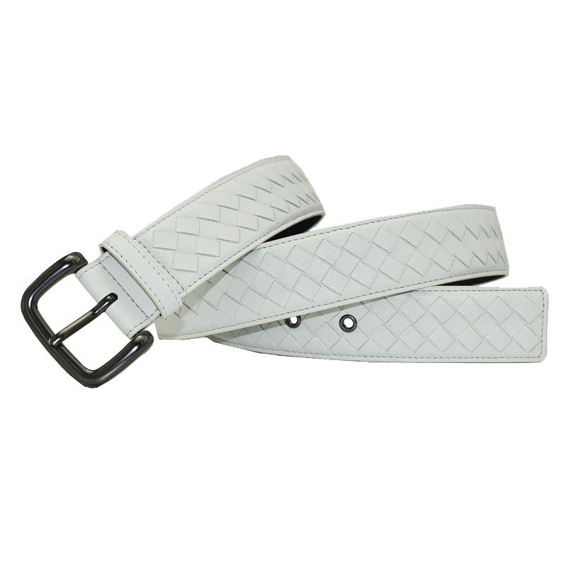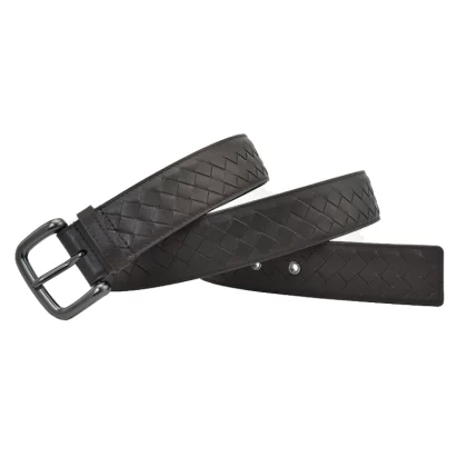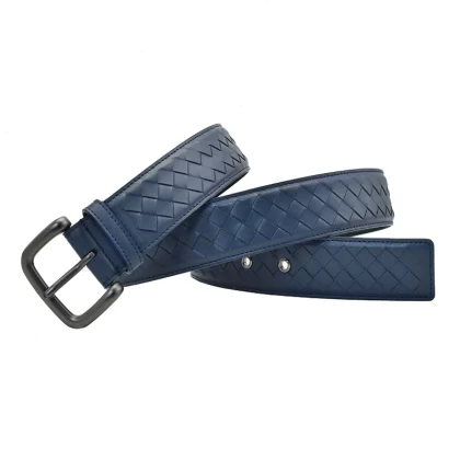 Casual woven genuine leather men's blue, white and brown trousers belt