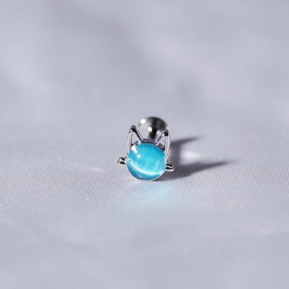Cat cat eye stone lip nail natural stone outer teeth stainless steel lip ring cute cartoon ear bone nail cross-border human body puncture