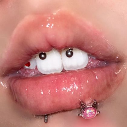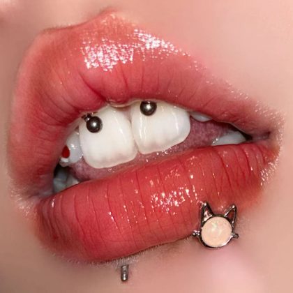 القط العين حجر الشفاه مسمار الحجر الطبيعي الأسنان الخارجية الفولاذ المقاوم للصدأ الشفاه الدائري لطيف الكرتون الأذن العظام مسمار عبر الحدود ثقب جسم الإنسان